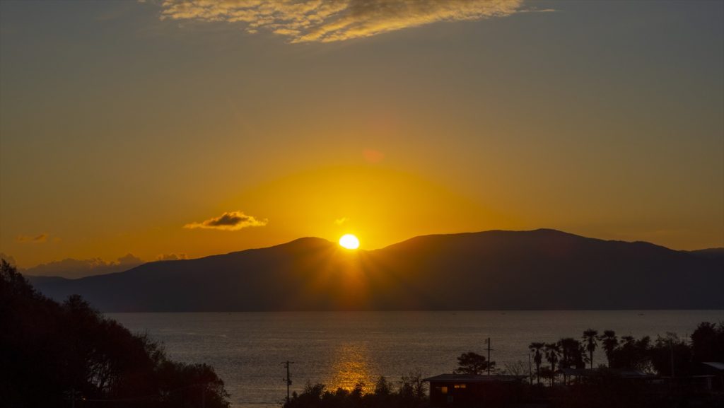 今朝の朝日はドローンフライト。
